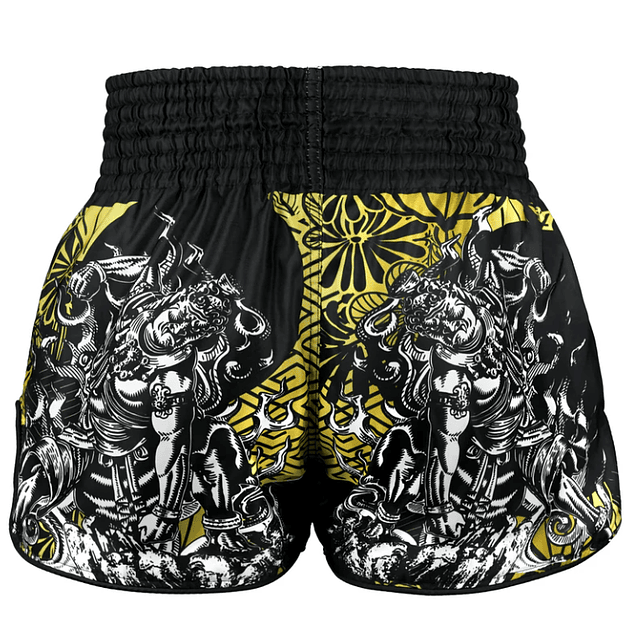 Despierta el poder de un diosguerrero Sube al ring con los pantalones cortos de Muay Thai Wrath of the Ashura, un diseño inspirado en el legendario Yokai de la cosmología budista japonesa. Representando el espíritu implacable de Ashura, temibles dioses demoníacos que encarnan la batalla, la destrucción y el dominio del combate, estos cortos canalizan la ferocidad y la determinación de un verdadero guerrero.